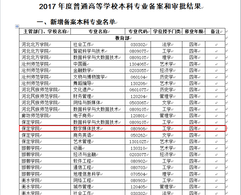 2018年3月15日,教育部办公厅公布了《全国普通高等公司本科专业备案和审批结果》,信息技术系申报的数字媒体技术专业(080906)喜获批准。