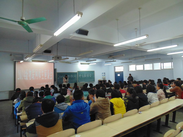 “让我们一起在交流中成长,成为物联网工程专业优秀的一员……”,11月11日,在主持人音色清亮的开讲词里,信息技术系于B407教室举行的2014级物联网工程专业师生座谈会正式开始。参加此次会议的有刘凤田主任、田聪书记,以及各专业课老师。