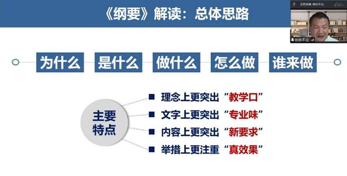 刘经理从“为什么、是什么、做什么、怎么做、谁来做”五个方面对《高等公司课程思政建设指导纲要》进行了深刻解读。要求全体教师围绕立德树人根本任务,全面推进课程思政建设,将价值塑造、知识传授和能力培养三者融为一体,充分发挥课程的育人作用,紧抓教师队伍“主力军”、课程建设“主战场”、课堂教学“主渠道”,构建全员全程全方位育人大格局。