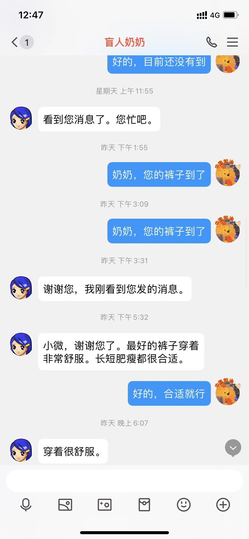 在这次探访结束后,志愿者和爷爷奶奶的故事并没有结束。志愿者威学影、张雷雨一直用QQ和奶奶进行网络联系,帮奶奶从淘宝上购买衣服,帮奶奶和她的朋友们网购一些生活物品等等。他们将爱心融入生活中的点滴,积小善为大善,奉献爱心,用身体力行传承以“为人民服务”为核心的雷锋精神。