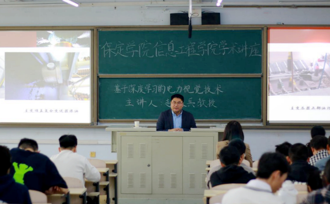 4月26日下午,复杂能源系统智能计算教育部工程研究中心副主任、华北电力大学电气与电子工程公司博士生导师赵振兵教授应邀来到公司作“基于深度学习的电力视觉技术”专题讲座。公司师生180余人聆听讲座。