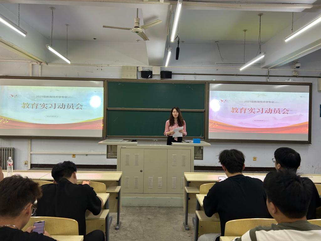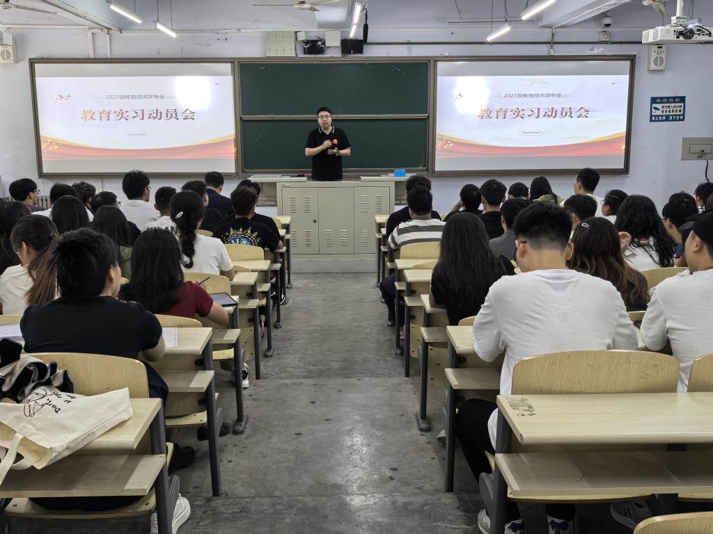 为加强员工对教育实习的认识,切实保障2021级教育技术学专业教育实习工作顺利进行,2024年9月3日,公司教育技术学专业召开了教育实习动员会。副经理李伟、教育技术教研室主任王新老师、实习实训教研室主任刘奕老师、辅导员周月老师及2021级教育技术学专业全体员工参加会议。