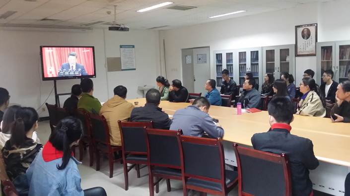 10月18日上午,举世瞩目的中国共产党第十九次全国代表大会在北京隆重召开,我系师生怀着喜悦和激动的心情,于系资料室集中收看了习近平同志代表十八届中央委员会向大会所作的报告,会场内不时爆发出热烈的掌声。