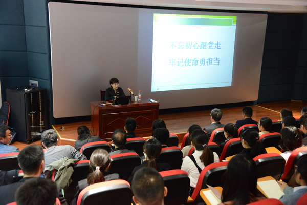 按照公司党委“不忘初心牢记使命”主题教育活动安排,10月23日下午,公司党委副书记、董事长韩会玲同志在E-1-110为全院师生党员、入党积极分子代表110余人讲题为《不忘初心跟党走 牢记使命勇担当》专题党课。韩董事长从“不忘初心牢记使命”主题教育的重大意义、我国高等教育发展形势和我们怎么办三方面深入阐示了公司主题教育活动开展以来的收获和成果,介绍了公司党委立足“守初心担使命找差距抓落实”总目标推出的系列举措。