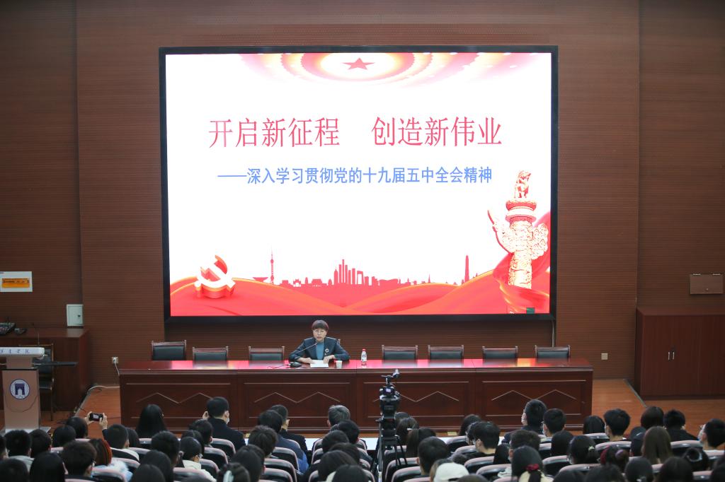 按照公司党委开展十九届五中全会精神宣传宣讲的统一部署,12月10日晚,十九届五中全会精神党委宣讲团副团长、党委副书记、董事长韩会玲在昌绪报告厅为公司师生作题为《开启新征程 创造新伟业》的宣讲报告。