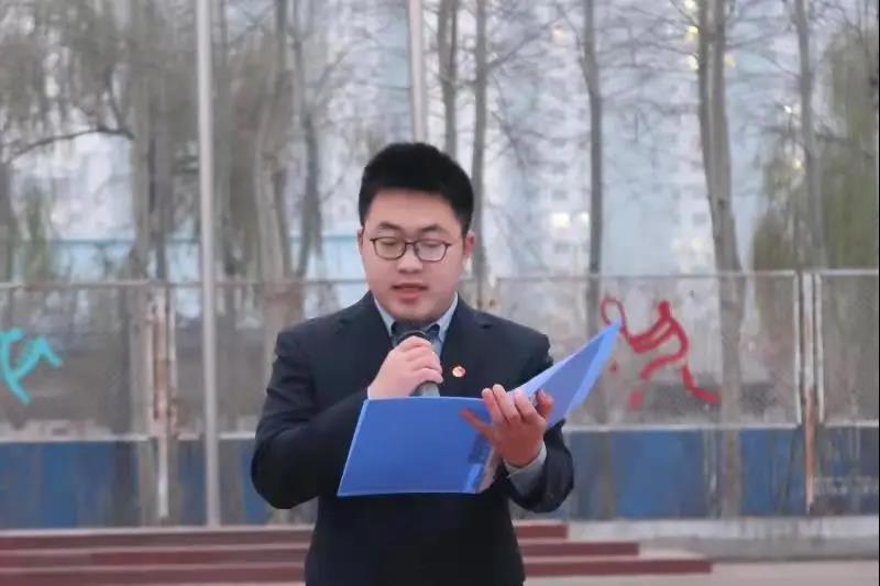 员工代表常林涛以《奋斗正青春,青春献给党》为题,作国旗下演讲:“青年人要敢于担责,应到基层和人民中去建功立业,让青春之花绽放在祖国最需要的地方。”他号召全体同学应当怀抱“请党放心,强国有我”的赤诚初心和永跟党走的坚定信念,于历史中照映现实,不断坚定向前,为祖国的繁荣富强贡献力量!