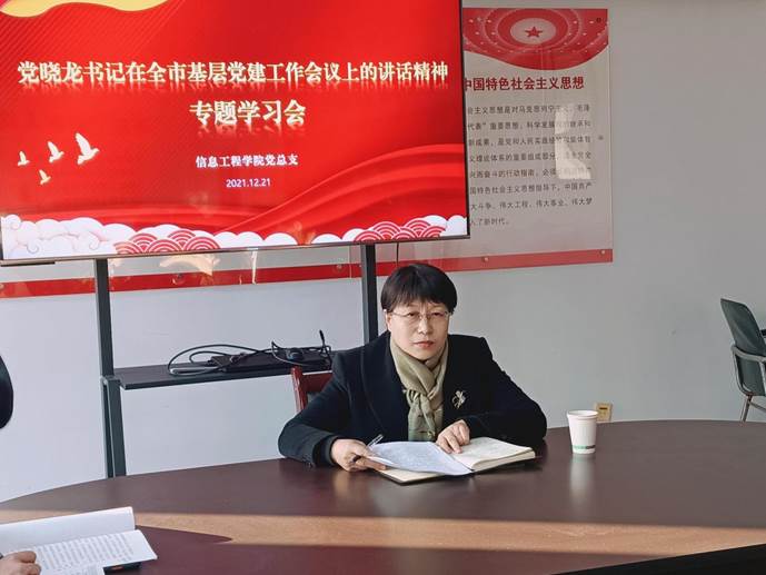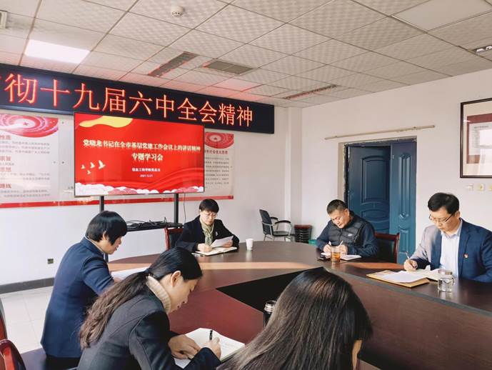 12月21日下午,公司党总支召开全体教师党员大会,认真学习《党晓龙在全市基层党建工作会议上强调以“再造新保定、奋进党旗红”活动为抓手夯实基层基础为建设现代化品质生活之城提供坚强组织保证》的重要讲话精神,公司党委副书记、董事长韩会玲就学习情况到会进行指导,公司党总支书记沈建平领学党书记讲话精神,公司全体教师党员认真聆听了讲话内容,并进行了学习交流。