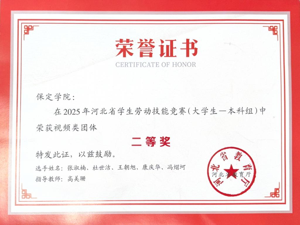 beat365中国官网员工在河北省劳动技能竞赛中荣获视频类二等奖