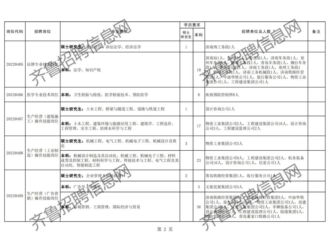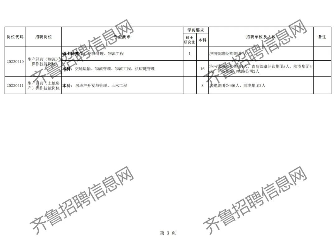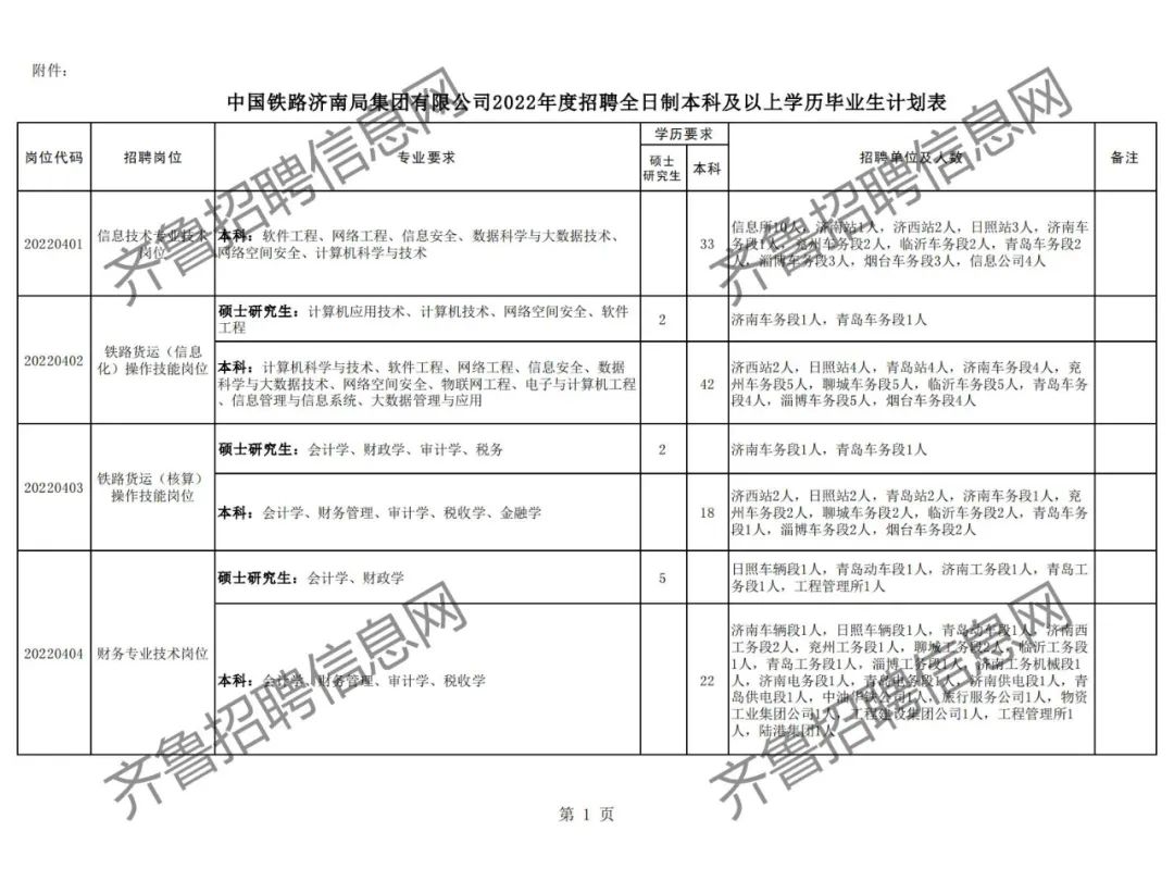 附件:中国铁路济南局集团有限公司2022年度招聘普通高校本科及以上学历毕业生计划表