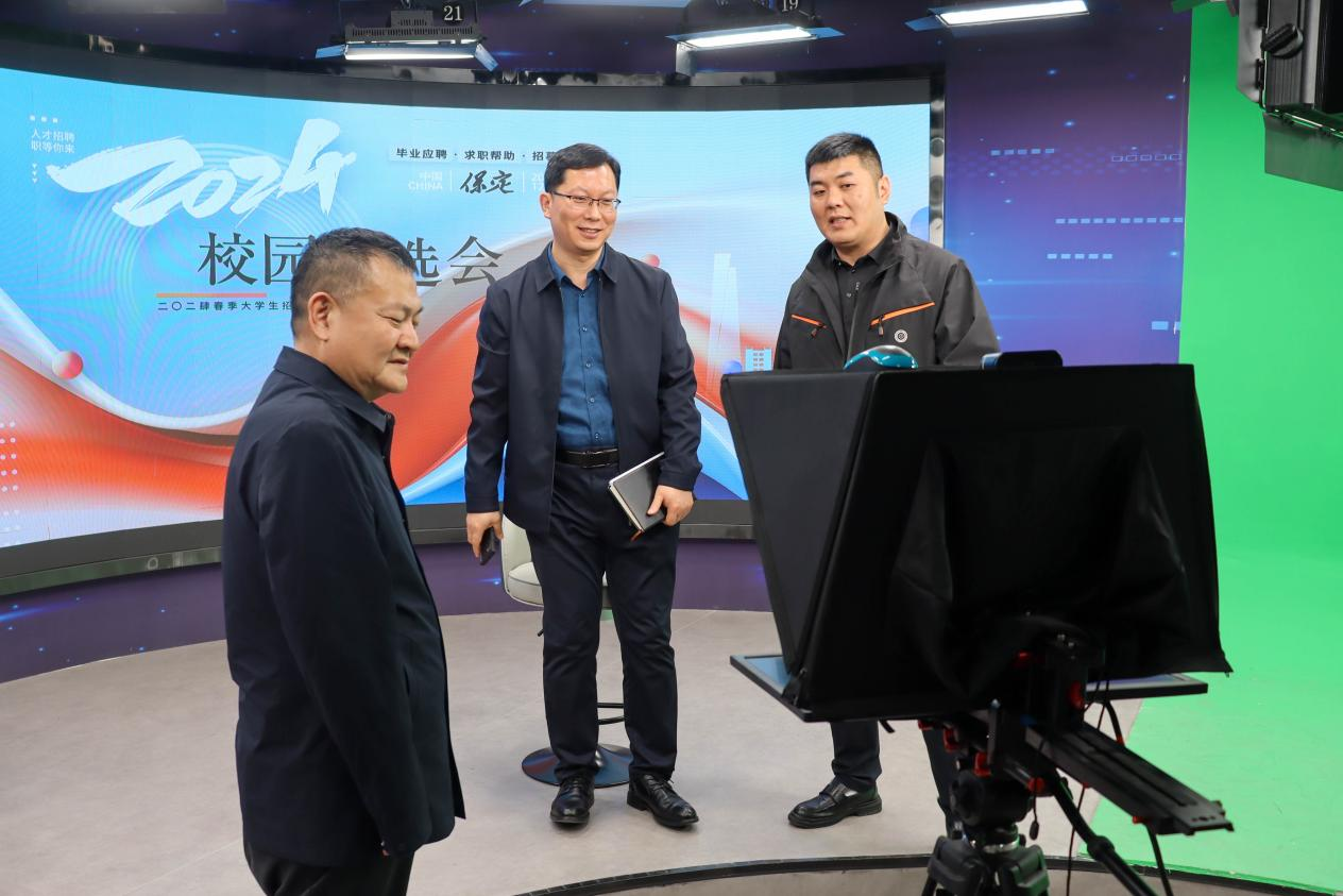 为深入贯彻落实“访企拓岗促就业”专项行动的精神,进一步推动毕业生更加充分更加高质量就业。4月29日,公司党支部书记沈建平、经理刘凤田、副书记范娟、副经理李伟,辅导员张彬、尹永亮、高美珊到保定数字人力资源服务产业园交流考察,参观产业园数字展厅、党员活动室、融媒体中心等,实地走访了南方教育集团、保定文发人才、科大讯飞、浪潮云等入园企业,并围绕校企合作服务毕业生就业工作进行了座谈。